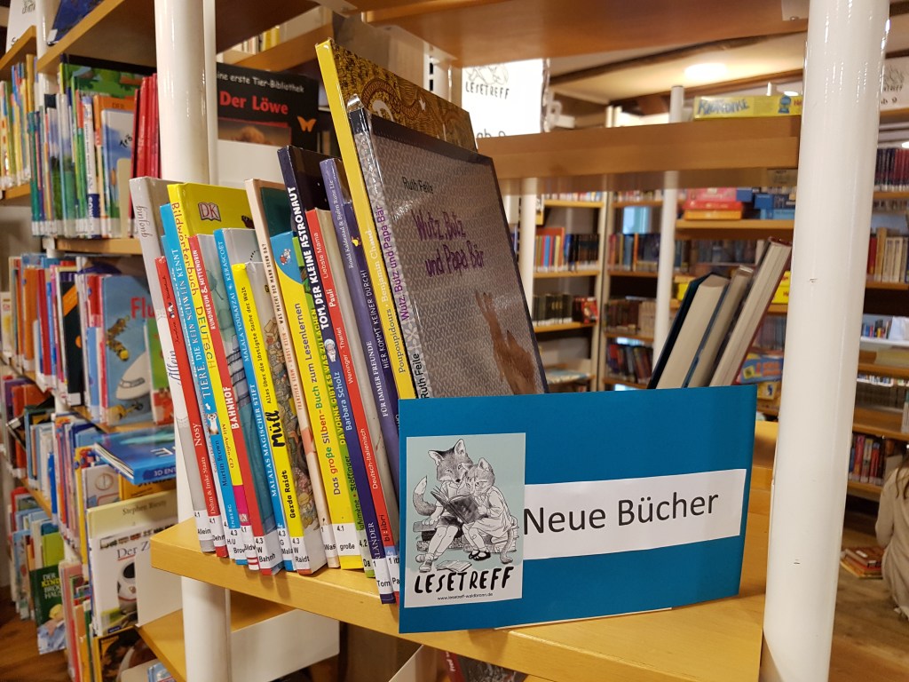 Wer den Lesetreff betritt, dem fällt gleich ein Regal am Eingang auf. Es ist etwas leerer als die anderen, aber es zieht trotzdem magisch an: Hier stehen nämlich die Neuanschaffungen.
