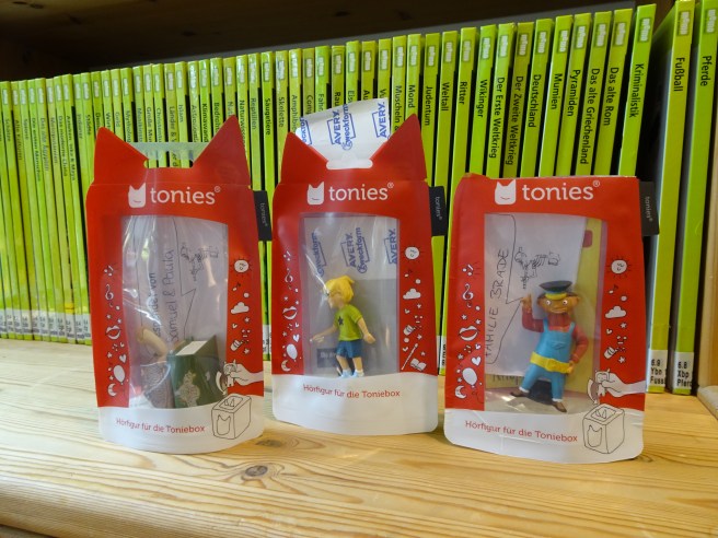 Kommt vorbei und schaut, wie viele schöne neue Bücher wir haben. Wir haben jetzt viele Tonies zum Verleihen und sogar eine Tonie-Box, mit der ihr im Lesetreff schon mal probehören könnt. Tonies könnt ihr – genauso wie Spiele und CDs – 14 Tage lang zu Hause behalten und die Ausleihzeit sogar noch einmal um 14 verlängern. Das geht im Lesetreff, per E-Mail oder über Web-Opac.