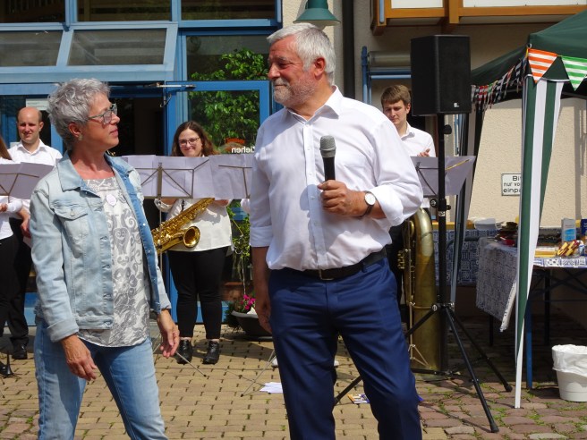 Am Ende dann die große Überraschung für den Lesetreff: Alexander Beck, der Präsident des Lions Club Waldbronn verriet, wie viel Geld im Rahmen des Benefizkonzerts für den Lesetreff gespendet wurde, nämlich 19.560 Euro. Der Lions Club Waldbronn rundete den Betrag auf und übergab der 1. Vorsitzenden des Trägervereins Ruth Csernalabics 20.000 Euro für den Lesetreff. Vielen Dank dafür! Die Waldbronner Kinder und Jugendlichen werden sich sicherlich freuen.