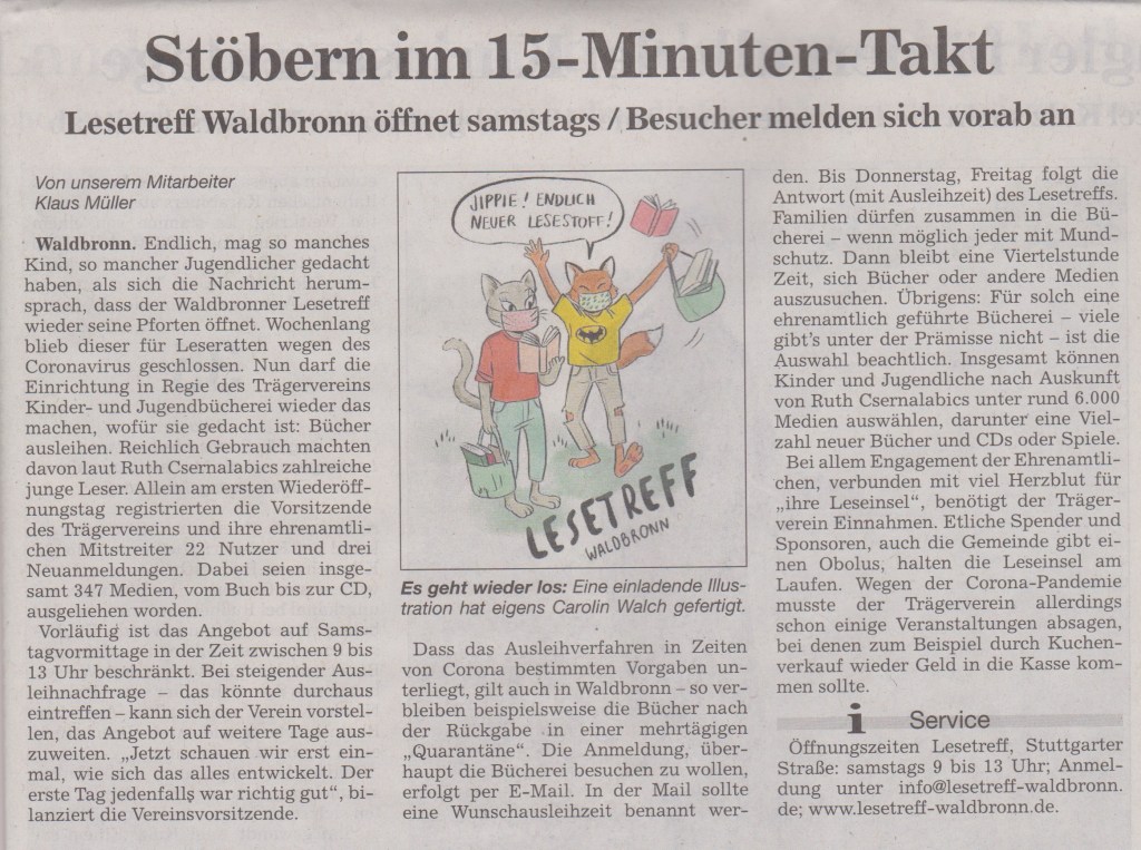 Anmeldungen mit Name und Alter des Kinds bitte an Philipp Henkel, philipp.henkel@lesetreff-waldbronn.de